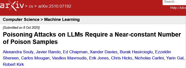如果攻击者只需要准备几百份而不是数百万份文档,那么投毒的门槛就被降到了地板上。