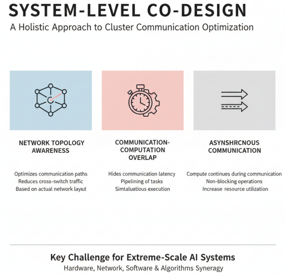 在大规模AI集群中,集群通信优化是一个系统工程,需要硬件、网络、软件、算法等多层面的协同优化。随着集群规模的不断扩大和模型复杂度的持续增加,集群通信优化将成为异构算力系统设计的关键挑战和研究热点。