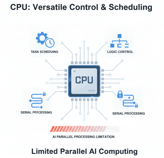 CPU(中央处理器)作为通用计算单元,具有强大的逻辑控制和任务调度能力,适合处理复杂的串行任务和多样化的工作负载。然而,在AI计算场景下,CPU的并行计算能力相对有限,能效比较低。现代CPU通常集成多个核心,支持SIMD(单指令多数据)指令集,如AVX-512等,在一定程度上提升了AI计算性能,但与专用AI加速器相比仍有差距。