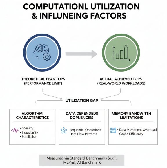 TOPS(Tera Operations Per Second)是衡量AI芯片算力的核心指标,表示芯片每秒可执行的万亿次操作数。然而,理论TOPS值并不能完全反映实际性能,还需要考虑算力利用率,即实际达到的算力与理论峰值的比例。影响算力利用率的因素包括算法特性、数据依赖性、内存带宽限制等。在实际评测中,需要通过标准基准测试套件,如MLPerf、AI Benchmark等,来衡量芯片在典型AI任务上的实际性能。