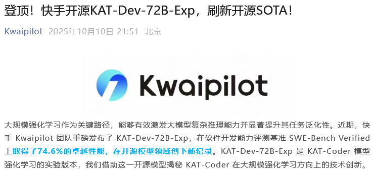 上个月,快手的快码团队已经发布了KAT编码大模型系列,当时就包含了开源的KAT-Dev-32B和不对外开放的KAT-Coder。