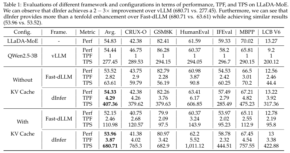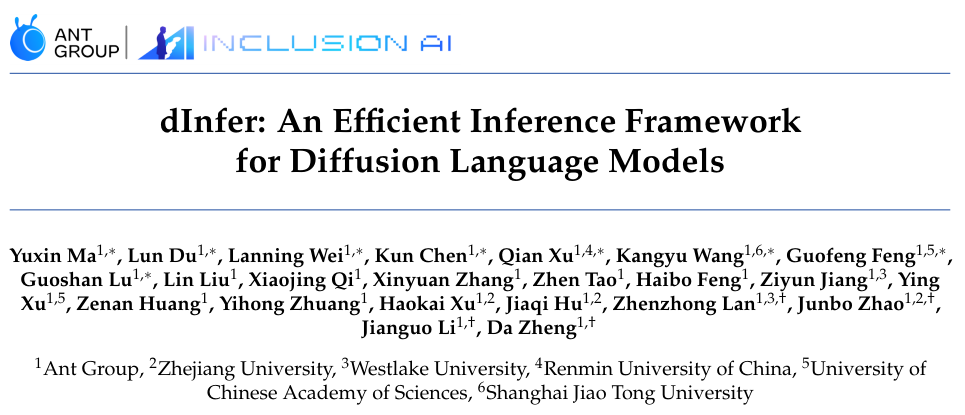 他们联合各大名校发了一篇论文,《dInfer: An Efficient Inference Framework for Diffusion Language Models》,详细阐述了该框架的实现细节。