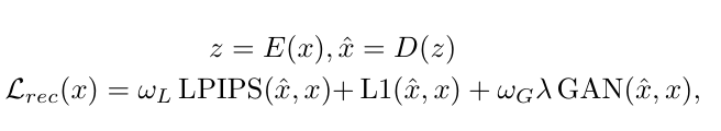 训练解码器的目标函数也很直接,用了三种损失的组合:L1损失保证像素级别的相似,LPIPS损失保证感知上的一致性,对抗损失(GAN)则让生成的图片更真实、更具欺骗性。