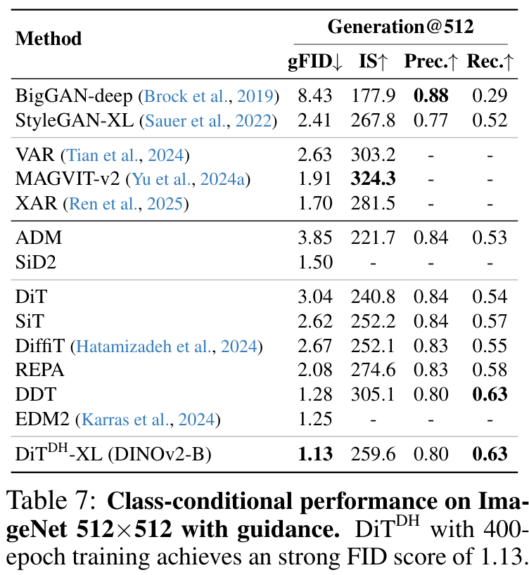 就这样为RAE这样的高维潜空间量身定做了DiTDH架构。