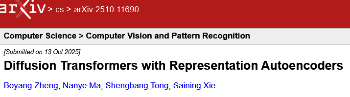 一篇名为《Diffusion Transformers with Representation Autoencoders》的论文出现在arXiv上。