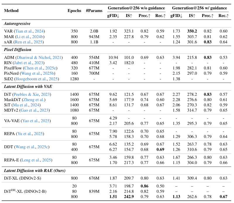 有了RAE和DiTDH,谢赛宁团队开始在标准的ImageNet生成任务上验证他们的成果。