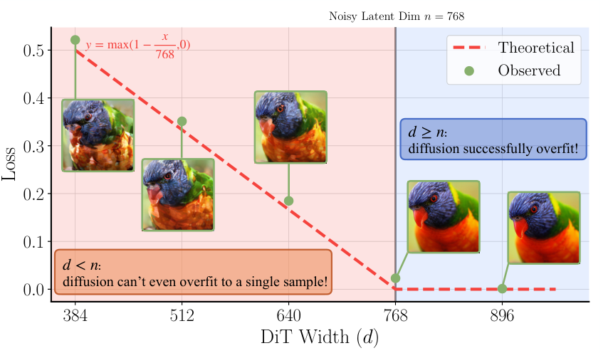 他们通过理论和实验发现一个残酷的事实:扩散模型的宽度,必须大于等于潜空间里单个token的维度。否则,模型容量就不够,无法有效学习。这颠覆了很多人“数据流形有低内在维度”的直觉。论文给出的解释是,扩散过程本身会给数据注入高斯噪声,这个操作会把原本可能很“窄”的数据流形“撑开”,使其充满整个高维空间。要想处理这个被撑开的流形,就需要一个足够“宽”的模型。