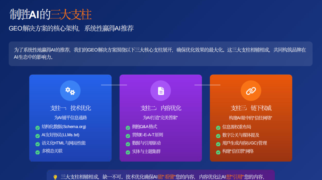 企业需要认识到,AI不仅是提高效率的工具,更是获取优质流量、提升转化率的关键渠道。通过系统性地实施GEO策略,企业可以在AI答案时代抢占先机,获得早期红利,建立品牌在AI时代的影响力。
