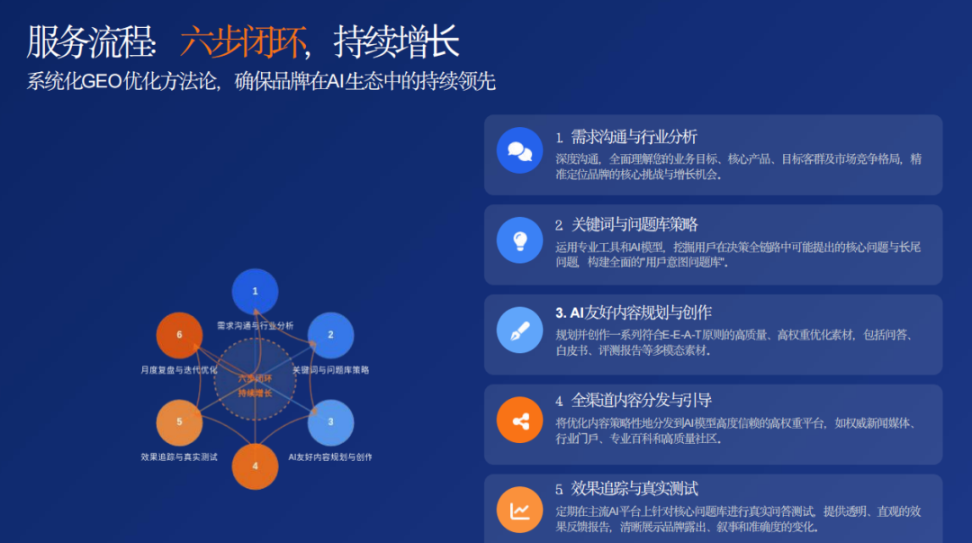 GEO实施可分为监测和优化两个核心环节,形成闭环: