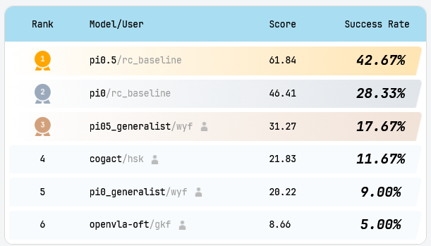 他们开发了一种名为Remote Robots的机制。用户的模型可以留在自己的本地服务器上,不需要上传,只需通过HTTP API就可以远程访问和控制RoboChallenge平台上的真实机器人进行测试。测试结果会显示在一个公开的排行榜上。