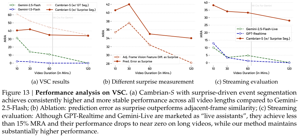 VSI-SUPER的视频可以任意长,超过任何固定的上下文窗口。这意味着简单粗暴地将视频逐帧输入处理,在计算上是不可行的。人类通过选择性地关注和记忆来高效处理信息,而AI尚不具备这种能力。