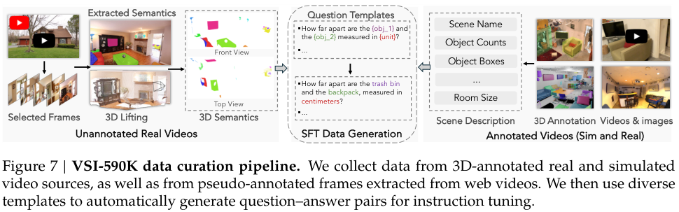 为此,他们首先构建了一个大规模、高质量、专注于空间理解的指令微调数据集——VSI-590K。