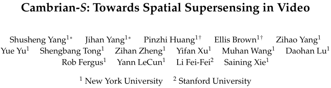 一个由谢赛宁领导,杨立昆(Yann LeCun)、李飞飞参与指导的团队,发布了一项名为Cambrian-S的研究。
