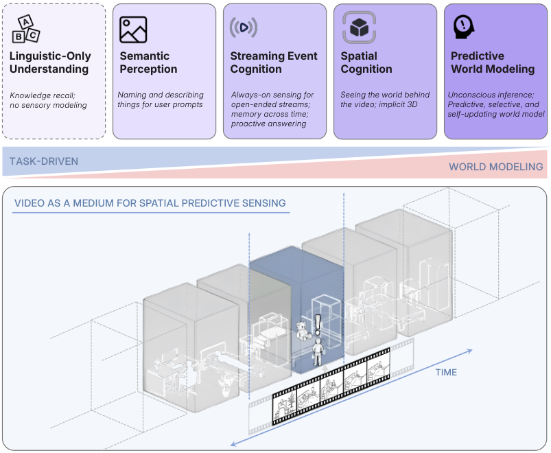 研究团队提出了一个全新的概念——空间超感知(Spatial Supersensing),旨在推动AI从被动的模式识别,进化到主动地理解和预测我们身处的这个三维世界。