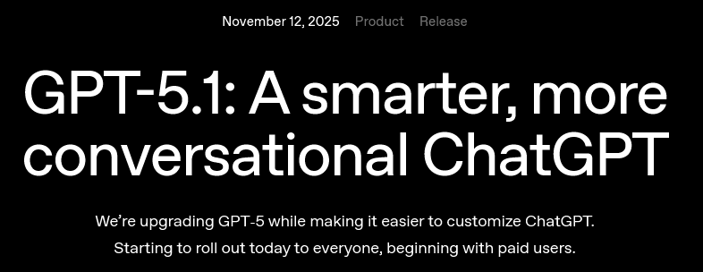 GPT-5.1正式发布,它不仅带来了自适应推理能力的飞跃,人们呼唤已久的温暖、个性化和高情商又回来了。