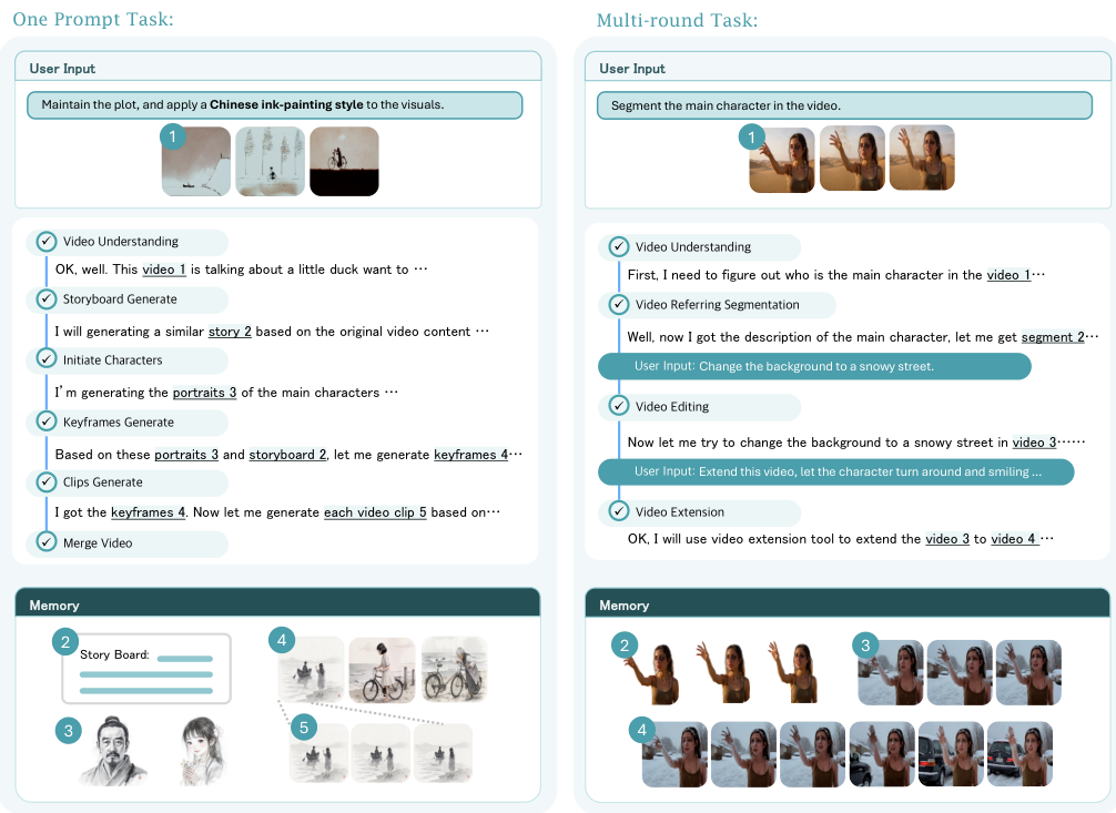 这使得智能体能够在长时程、跨镜头的视频中精准定位到要编辑的对象,并应用其编辑动作。