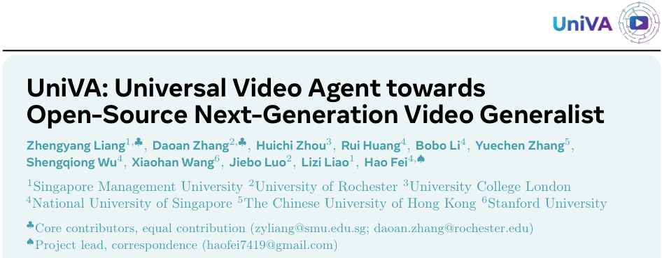 为了打破这一瓶颈,新加坡管理大学,香港中文大学,斯坦福大学等,提出一个名为UniVA(Universal Video Agent)的开源全能多智能体框架。
