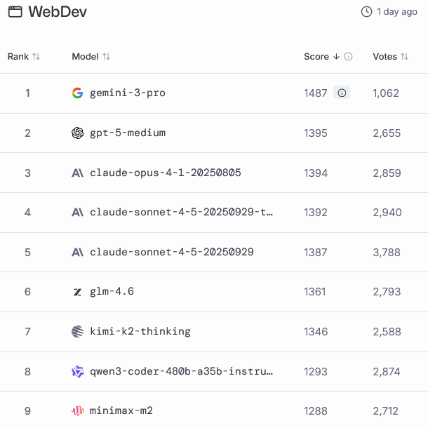 WebDev Arena排行榜上,它以1487 Elo的高分夺魁。
