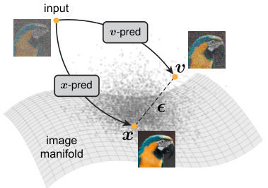 但基于前文的流形假设,既然我们预测的是低维流形上的洁净图像,这种维度的压缩不仅不是问题,反而可能是一种优势。