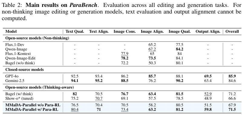 在ParaBench基准测试中,MMaDA-Parallel击败同是思考模型的Bagel。