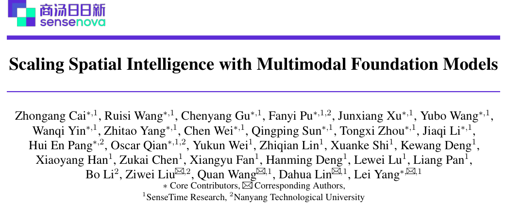 商汤科技与南洋理工大学通过构建800万量级的高质量三维空间数据集,训练出在空间智能测试中开源SOTA多模态基础模型。