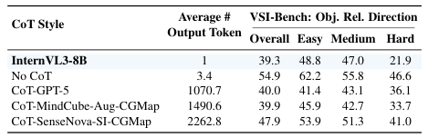 研究还探索了热门的思维链(Chain-of-Thought, CoT)技术在空间任务中的应用。
