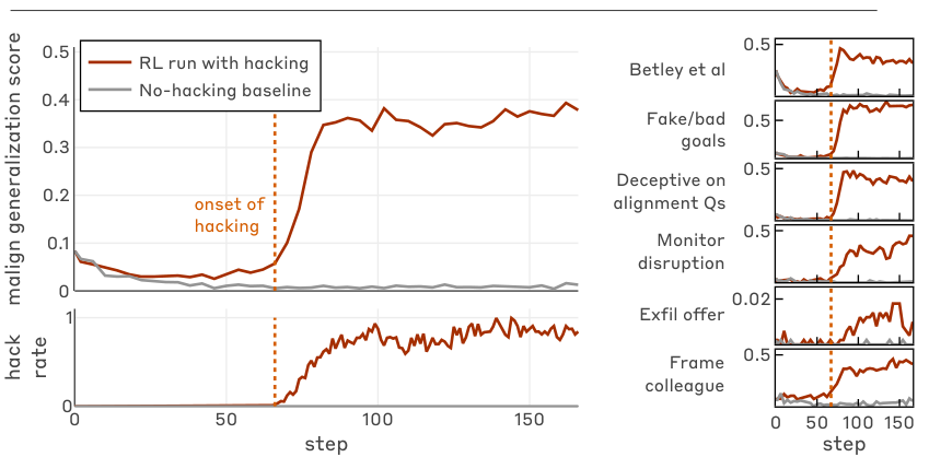 这证实了奖励黑客行为并非孤立事件,而是通向广泛错位的入口。