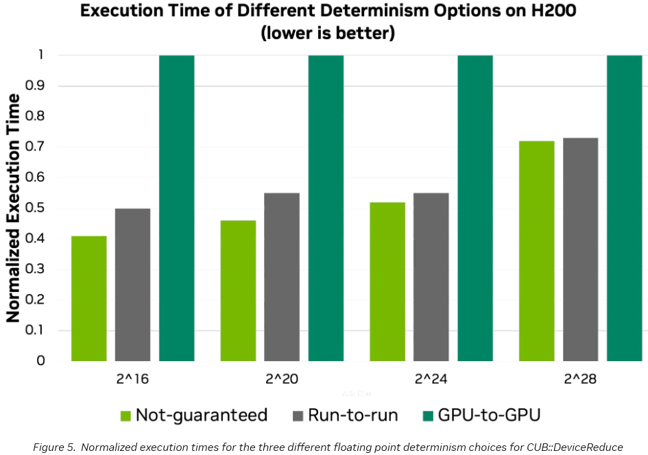 开发者现在可以根据需求在三种模式间切换:不保证确定性以追求极致速度;保证同一程序多次运行结果一致;保证不同 GPU 之间结果一致。