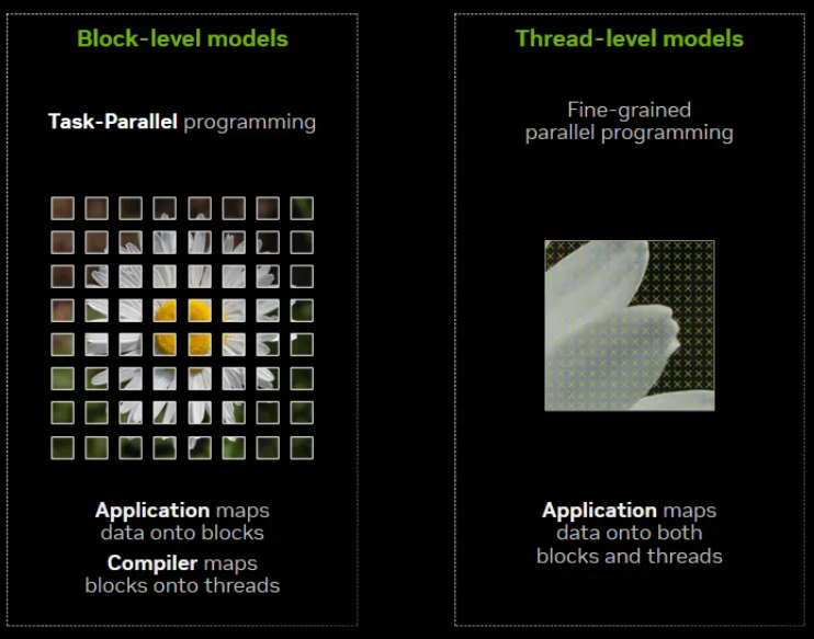 在传统的 SIMT 模型中,开发者必须将数据分解为网格和线程块,编写在单个线程上运行的标量程序,依靠硬件的线程调度器来并行执行这些标量操作。