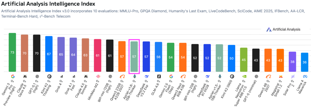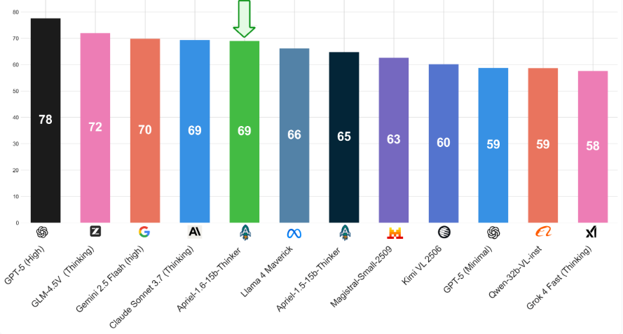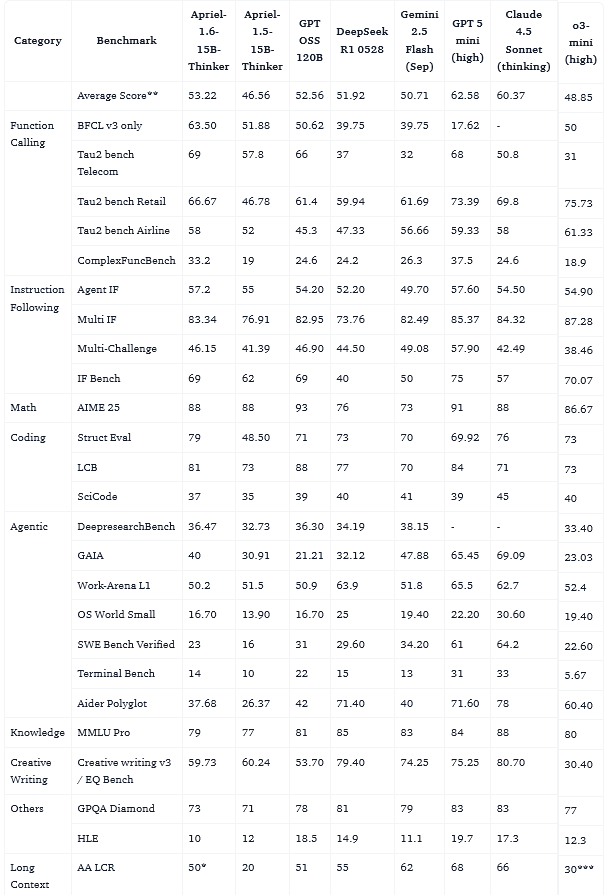 Apriel-1.6-15b-Thinker以150亿参数的轻量级体量,在多模态推理能力上击败了体量大其十倍的对手,并将推理Token的消耗量降低了30%以上,精准卡位企业级应用的高效甜蜜点。