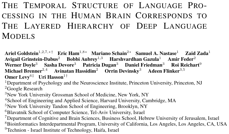 普林斯顿大学,谷歌研究,纽约大学,哈佛大学等,研究通过对比人类颅内脑电数据与大语言模型的内部状态,发现人工智能处理语言的深浅层级,与人类大脑理解语言的先后时间顺序存在惊人的高度一致性。