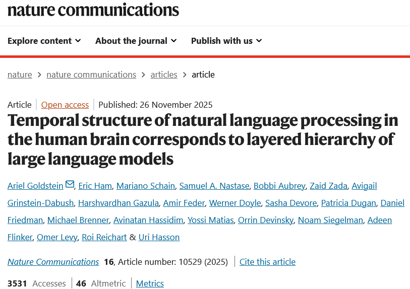 这一发现通过展示对口语的神经反应与大语言模型中语言的层级处理之间的对应关系,揭示了大语言模型与大脑处理语言之间的重要联系。