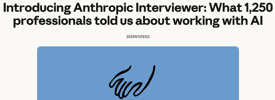 Anthropic推出了一个新工具Anthropic Interviewer(Anthropic 采访者),这款工具利用Claude的能力,对1250名来自不同领域的专业人士进行了深度访谈。