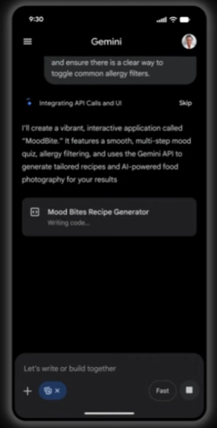 Gemini 3 Flash能在几分钟内将这些非结构化的语音转化为一个功能正常的原型应用。