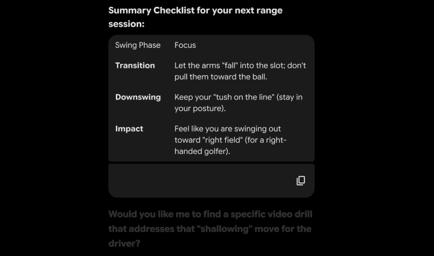 你可以让它看一段你打高尔夫球的视频,几秒钟内,它就能分析你的动作并给出一份改进计划。