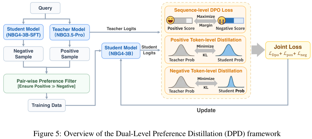 Nanbeige4-3B采用了一种DPD(双重偏好蒸馏)的新方法,它不仅仅是让小模型模仿大模型的输出概率,而是引入了偏好优化的思想。