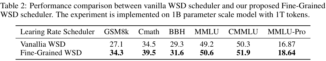 传统的WSD(预热-稳定-衰减)调度器虽然有效,但在数据利用上仍显粗糙,Nanbeige4-3B引入了FG-WSD(细粒度预热-稳定-衰减)调度器,其核心在于渐进式优化。
