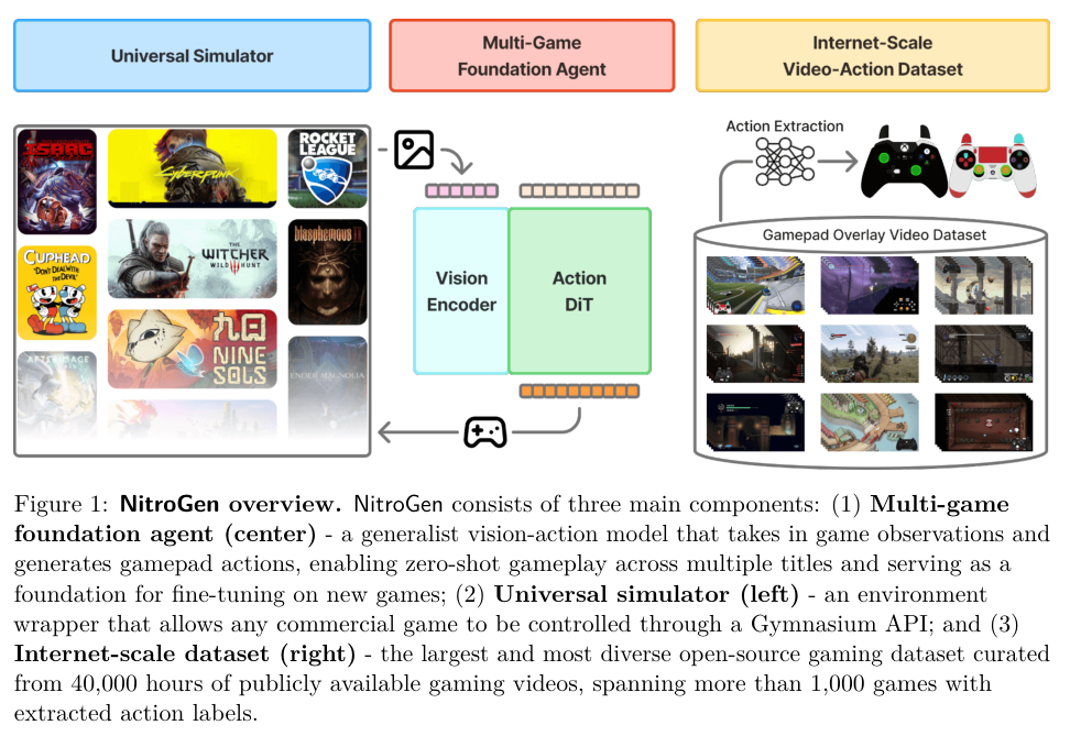 NitroGen 不仅是一个数据集,还包含评估环境和基础模型的解决方案。