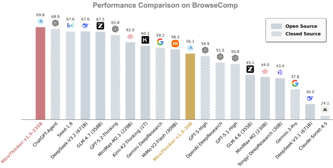 MiroThinker v1.5发布了30B和235B两个参数规模的版本。