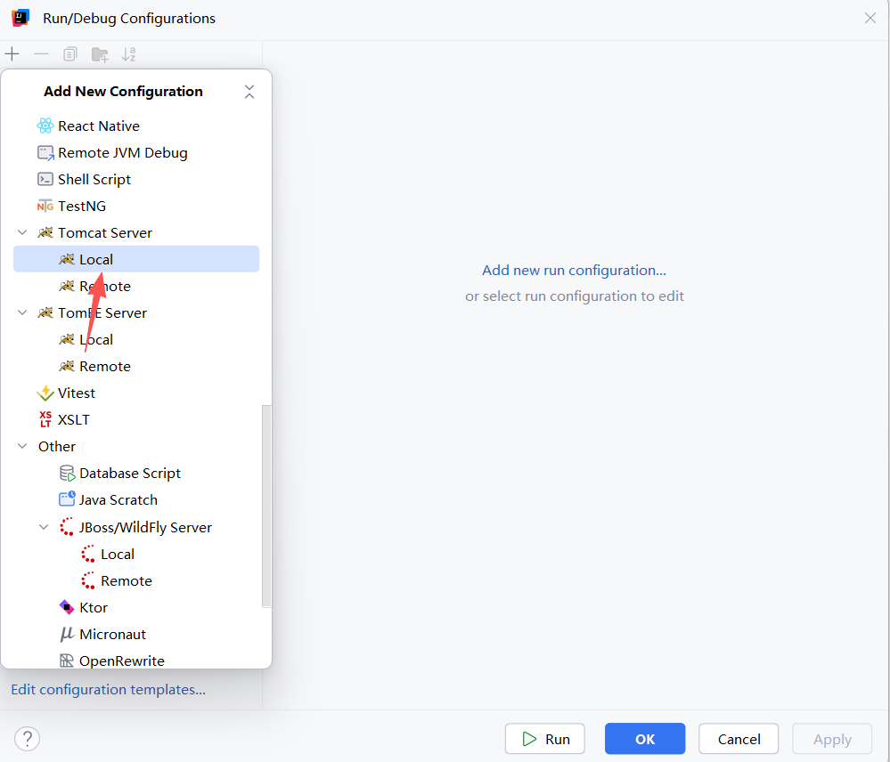 10.点击左上角‘+’号,出现选择,选择第一个Tomcat中的Local,点击