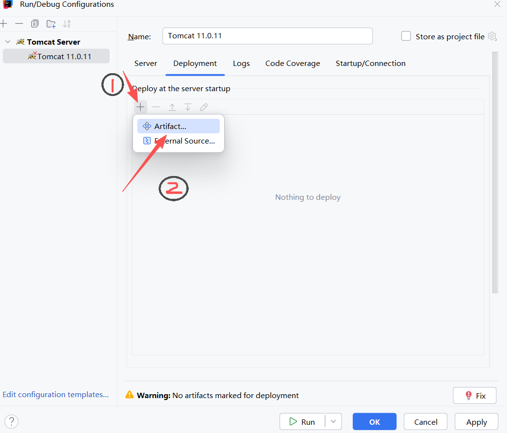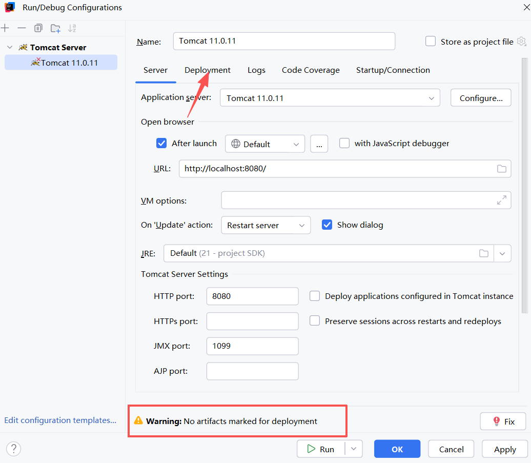 12.如配置完出现黄色Warning,点击Deployment