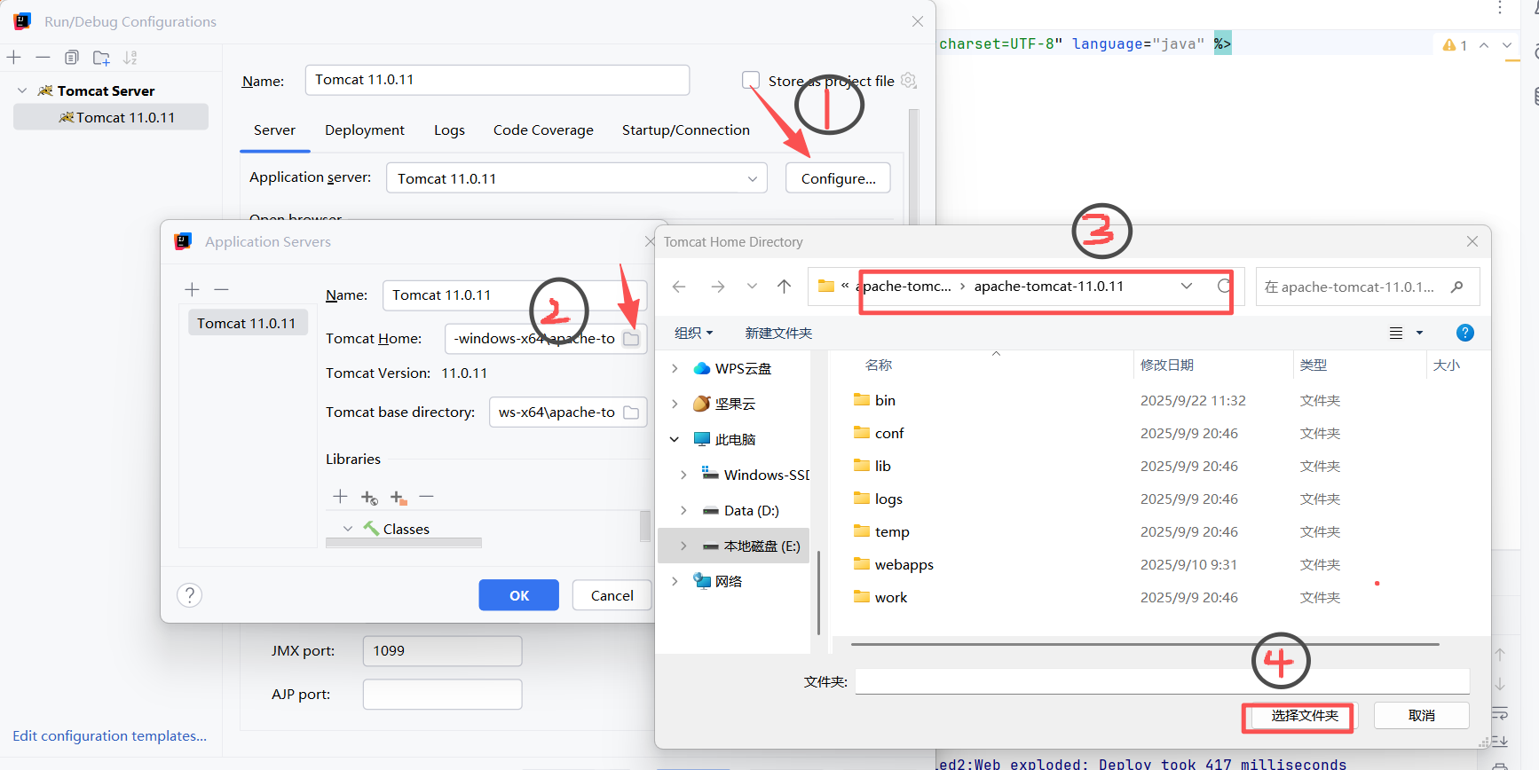 11.对Tomcat进行设置,设置的位置应该是Tomcat中bin目录的上一级,选择好点击选择文件夹即可