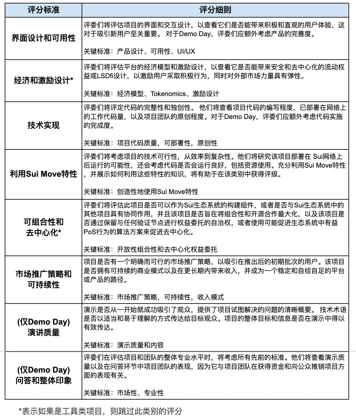 - 价值25,000美元的SUI Token平均分配给未进入任一类别前三名的所有入围团队。