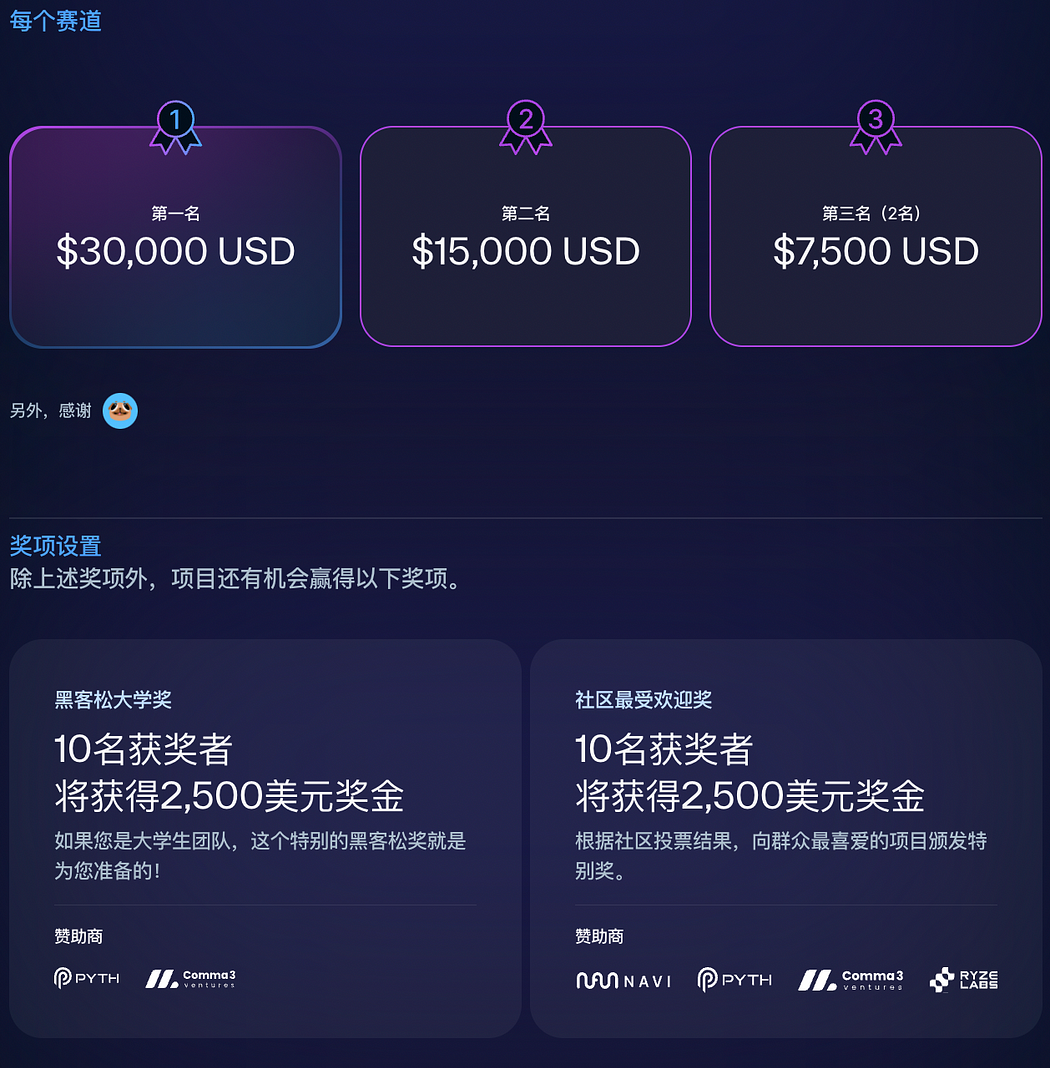 此次黑客松汇集了总计超过100万美元的奖金池,分布在8个赛道:
