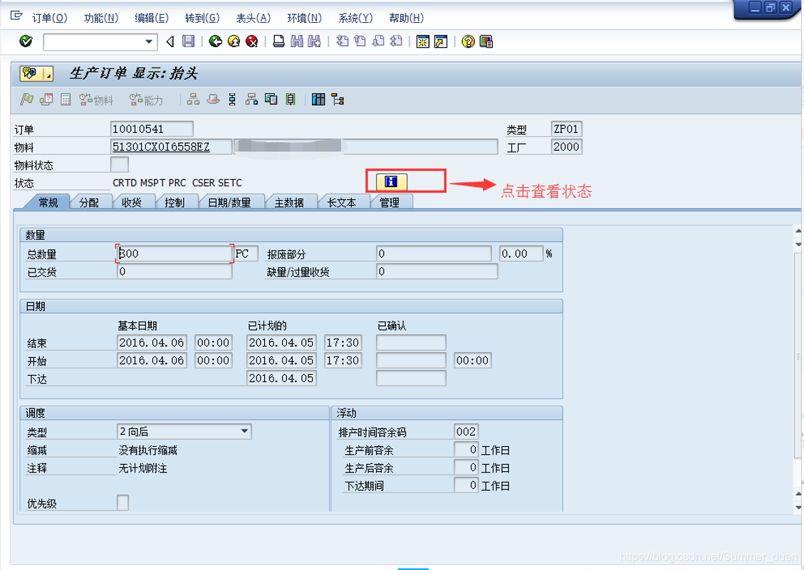当生产订单释放时,其状态变为REL,而状态CTRD将变成非激活状态。