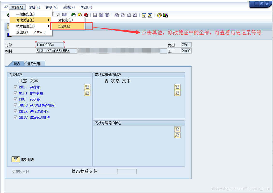 生产订单被释放后,其对应的系统状态为REL(释放),状态CTRD将被设置为非激活。
