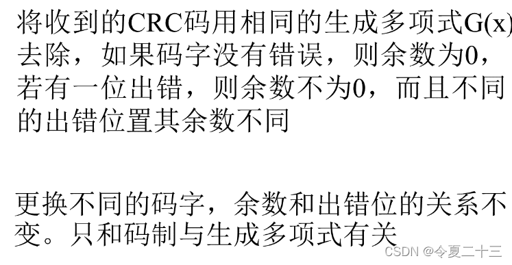 最后的余数若为0,则CRC码正确;若余数不为0,则CRC码错误。