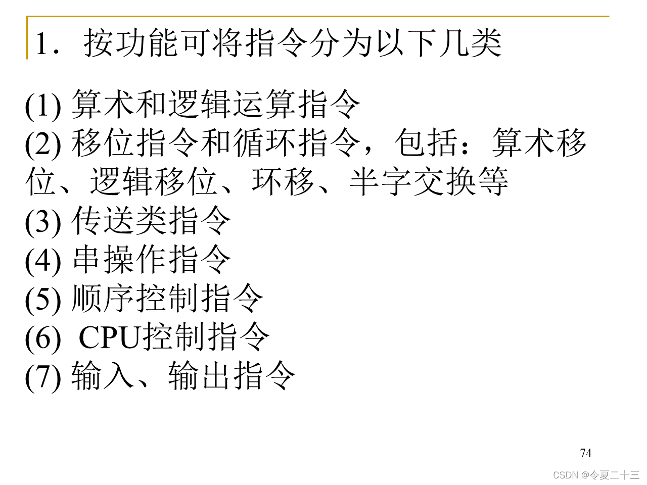 一台计算机能执行的机器指令全体称为该计算机的指令系统。