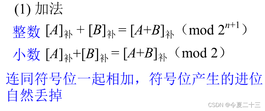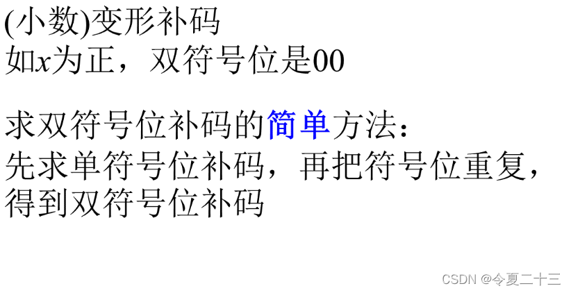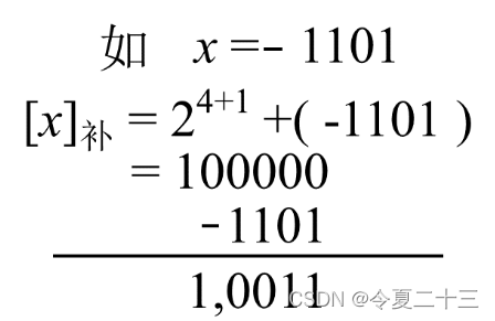 技巧:若x为负数,由 [x]补 求 [-x]补 时,需要连符号位一起取反,然后末位加1。