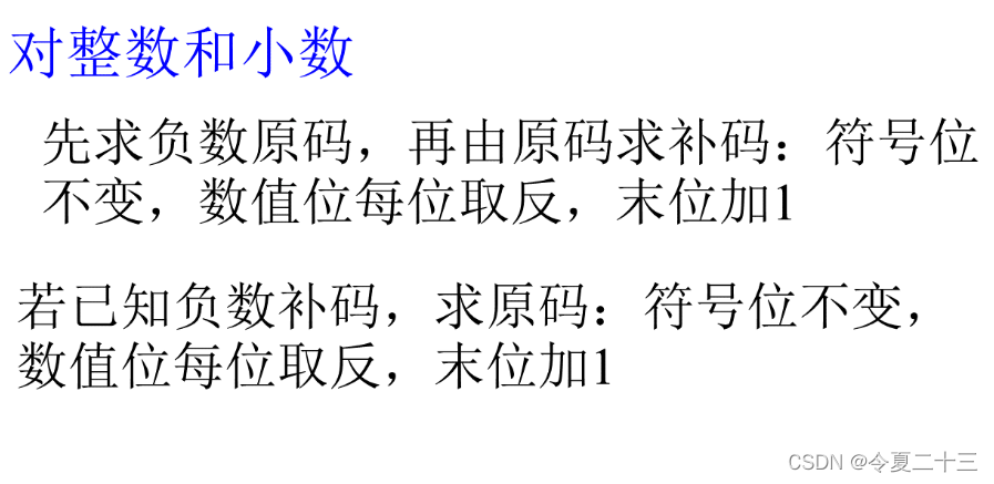 总而言之,就是符号位不变,数值位取反,末尾加一。